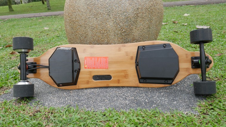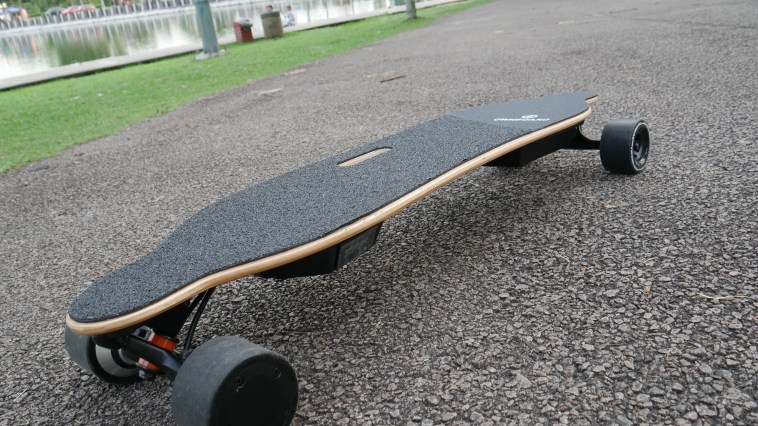 Big wheels, slight flex on the deck, and EVA grip tape padding help the Ownboard W1S perform fairly smoothly on even rough roads.