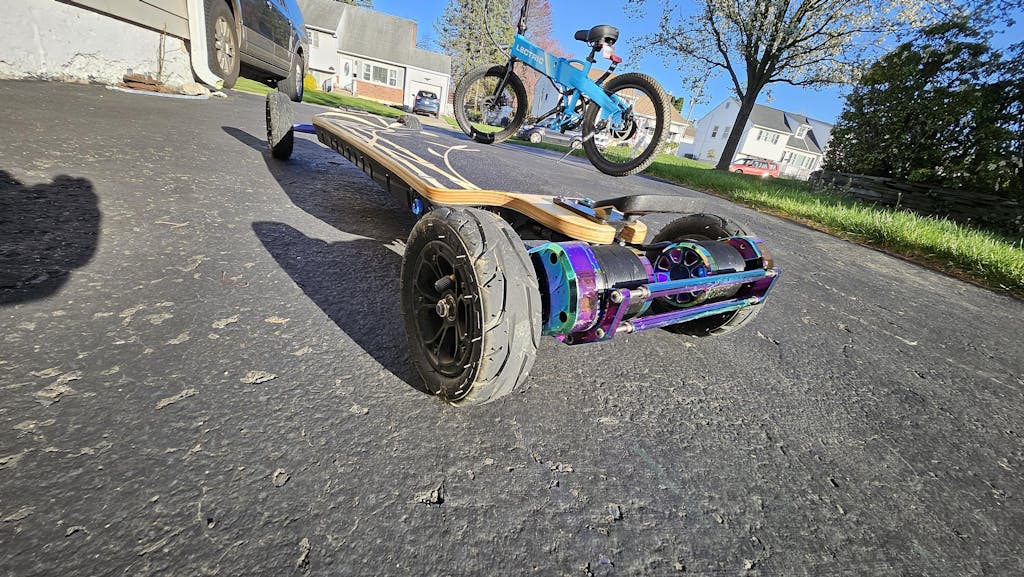 Awesome Board, one of the best-looking boards I have ever seen. The speed and acceleration are really fast and smooth; braking was also good. One of the best boards I've ever ridden. On its maiden voyage I took it to one of my local trails, did 30mi running on Orangatang Dad Bod 105mm Street Wheels in speed mode 2 and 3. After my trip it still had plenty of power and range to get me to the brewery and back. Great board I highly recommend!